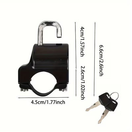 Hold din hjelm sikker med denne metal motorcykelhjelmlås. Låsen er robust, nem at montere og beskytter effektivt mod tyveri. Et praktisk og multifunktionelt tilbehør til motorcykler, der giver dig tryghed, når cyklen står parkeret, uden at gå på kompromis med brugervenlighed.